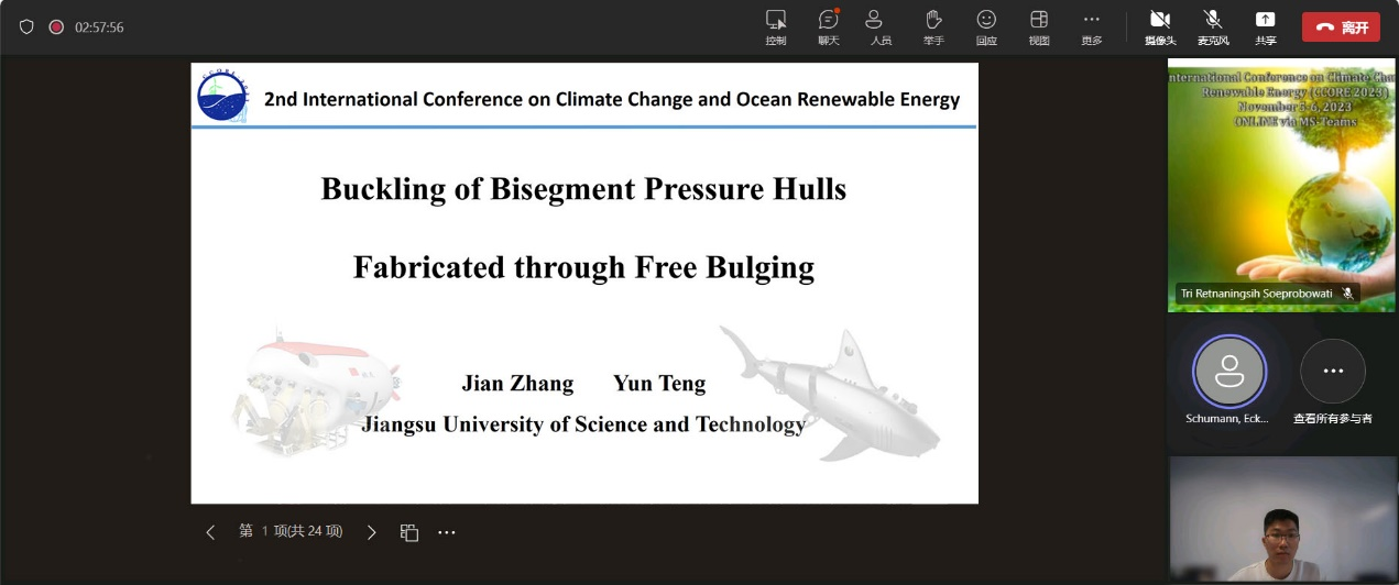 本次会议,williamhill中文21级硕士生滕赟作学术报告“Buckling of Bisegment Pressure Hulls Fabricated through Free Bulging”,与来自世界各地的专家学者进行深度的交流互动,充分彰显了公司机械学科的国际化水平和人才培养的国际化视野。与会学者专家交流各自的研究经历和最新研究成果,相互探讨,有效促进了该领域的科技创新。